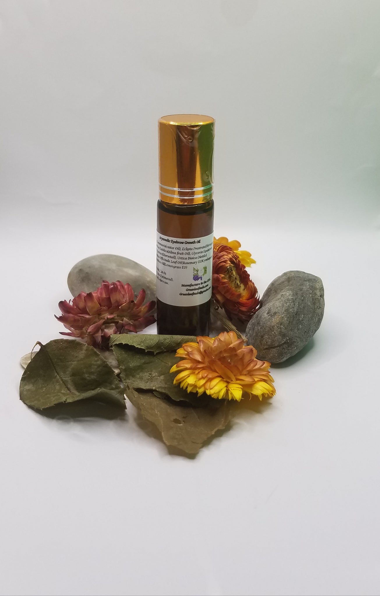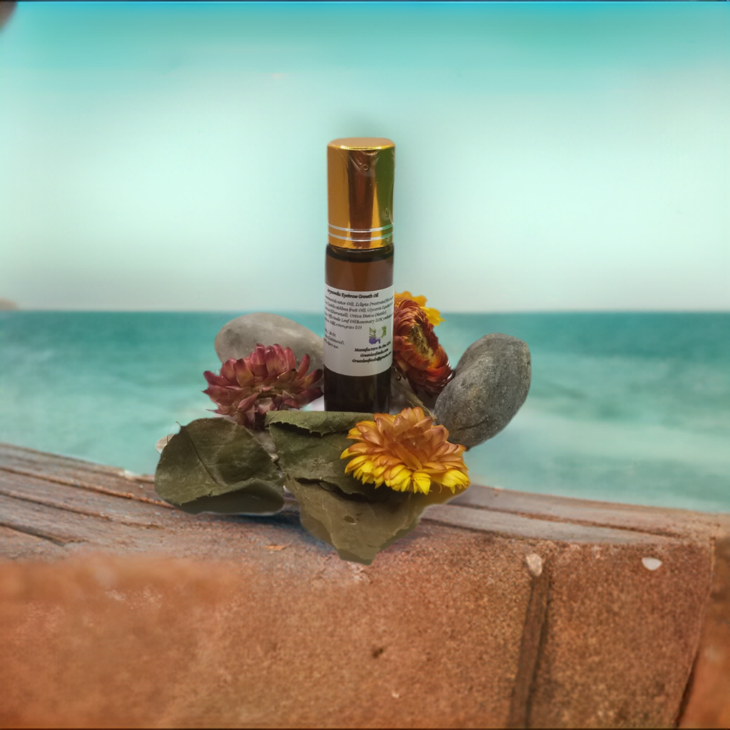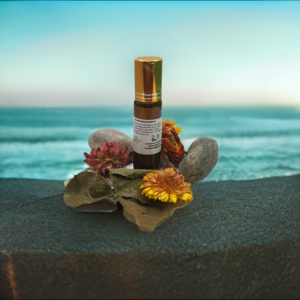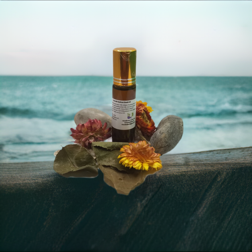 Soothing, botanicals, skin radian, natural and moisturizing our herbal growth oil.One of the popular beauty trends today is a  thick, healthy pair of eyebrows. Our eyebrow oil contains some of the best oils in Ayurveda that may contribute to healthy hair growth. Ayurvedic  Alma oil enhances hair color and spurred hair growth. Bhringrajnis oil contains a rich source of iron, magnesium, vitamin E &D, which helps promote hair growth. Castor Oil helps hair growth. Nettle extract stimulates new hair growth, Horsetail extract, rejuvenates hair, adds sheen to appearance contains selenium and cysteine, which are known to promote hair growth. Rosemary and Lemongrass essential oils add overall hair health and beauty. Package in a glass roll-on bottle for easy use.