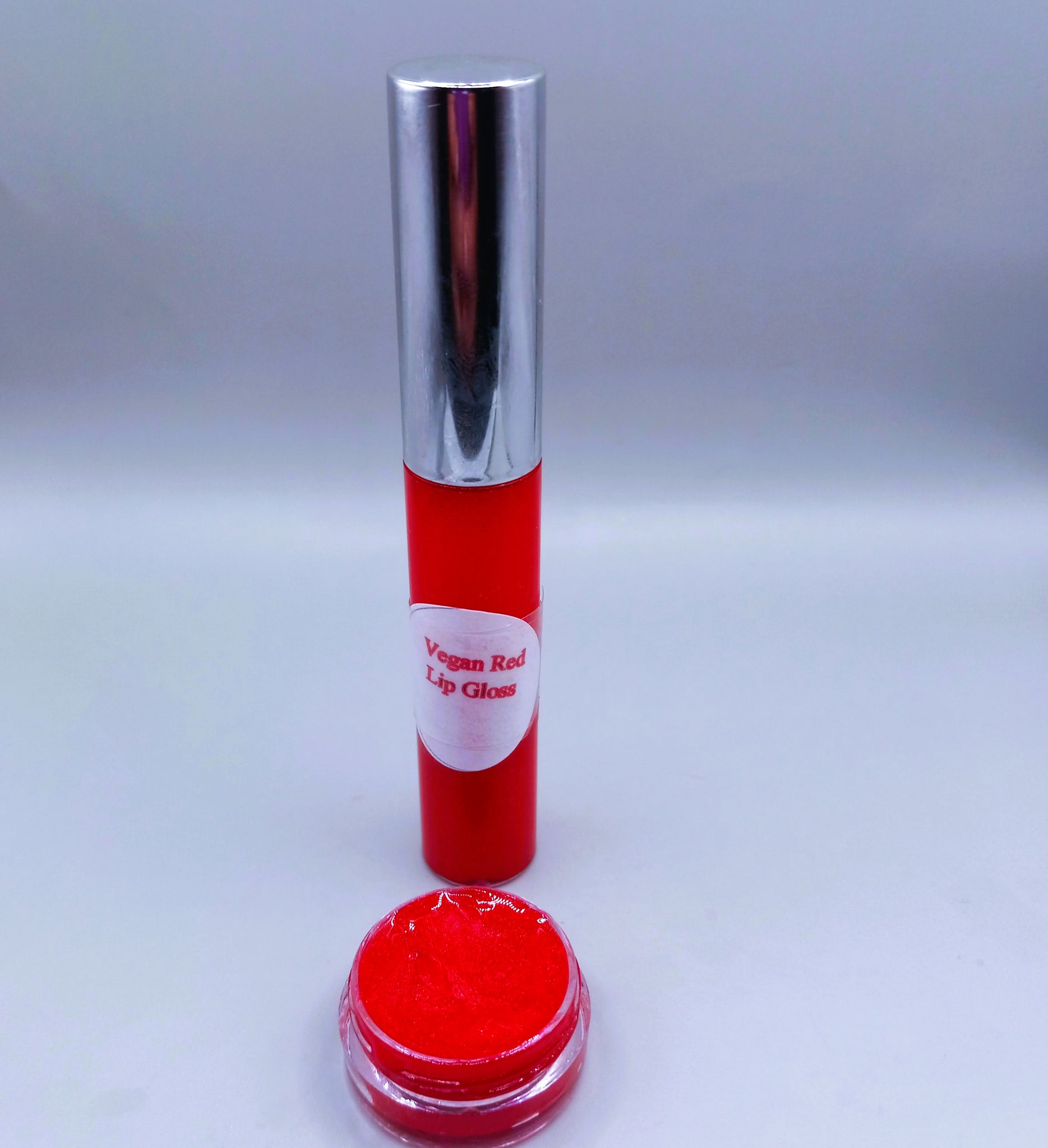 Natural, plant-based, artisan, hydrating, radiant, red lip gloss. Our vegan Lip-Gloss is made with a vegan glossy base, enrich with Fractionated Coconut Oil, and Vitamin E. Fractionated coconut oil can also be used to moisturize lips and help prevent them from aging, this oil may offer the UV protection that the delicate skin on your lips needs to stay young looking, even after years of sun exposure. Vitamin E Oil helps moisturizes your skin and help keeps a healthy glow. Our rich, Red natural pigment color help gives your lips a bold rich flawless appearance.