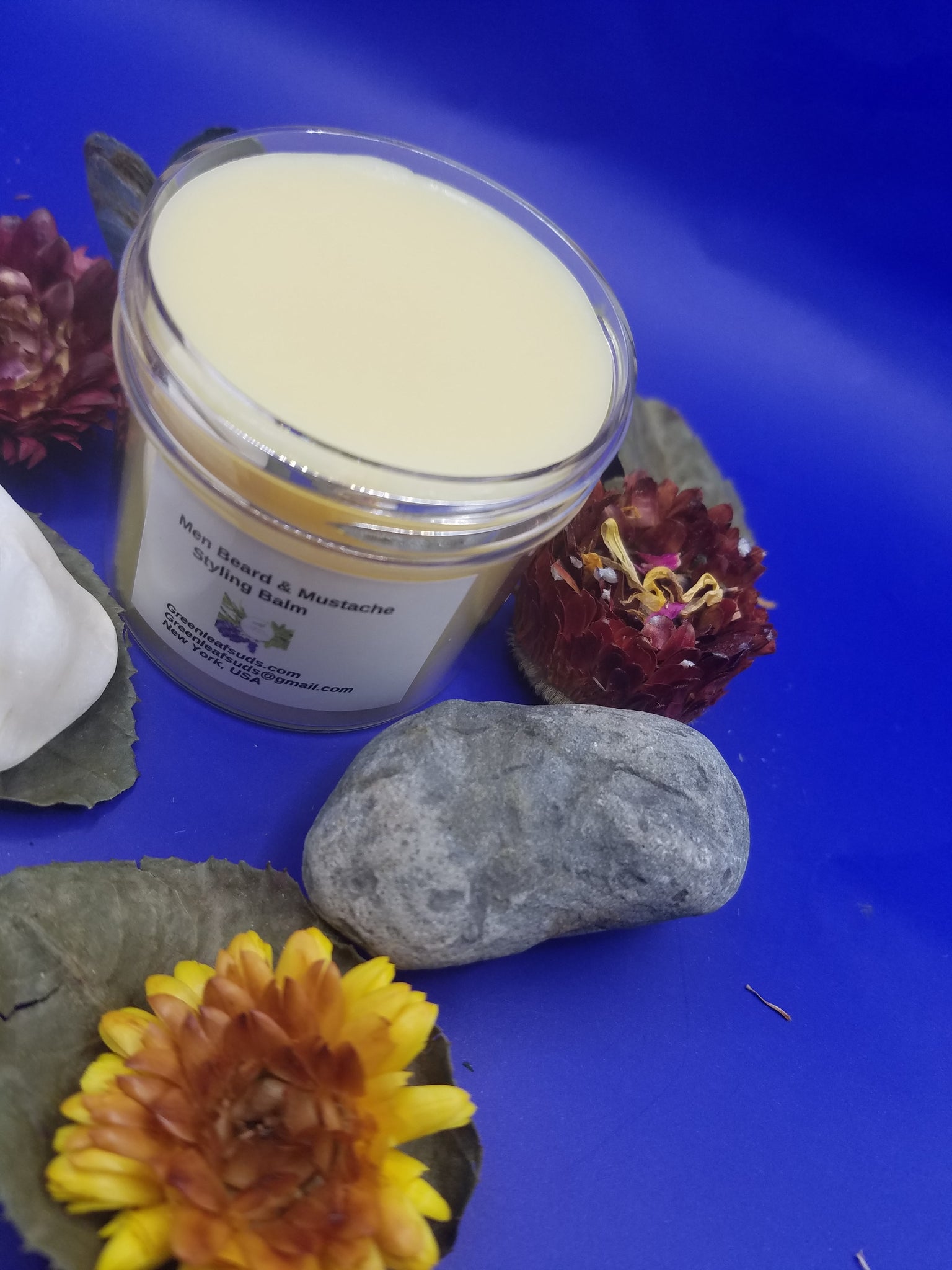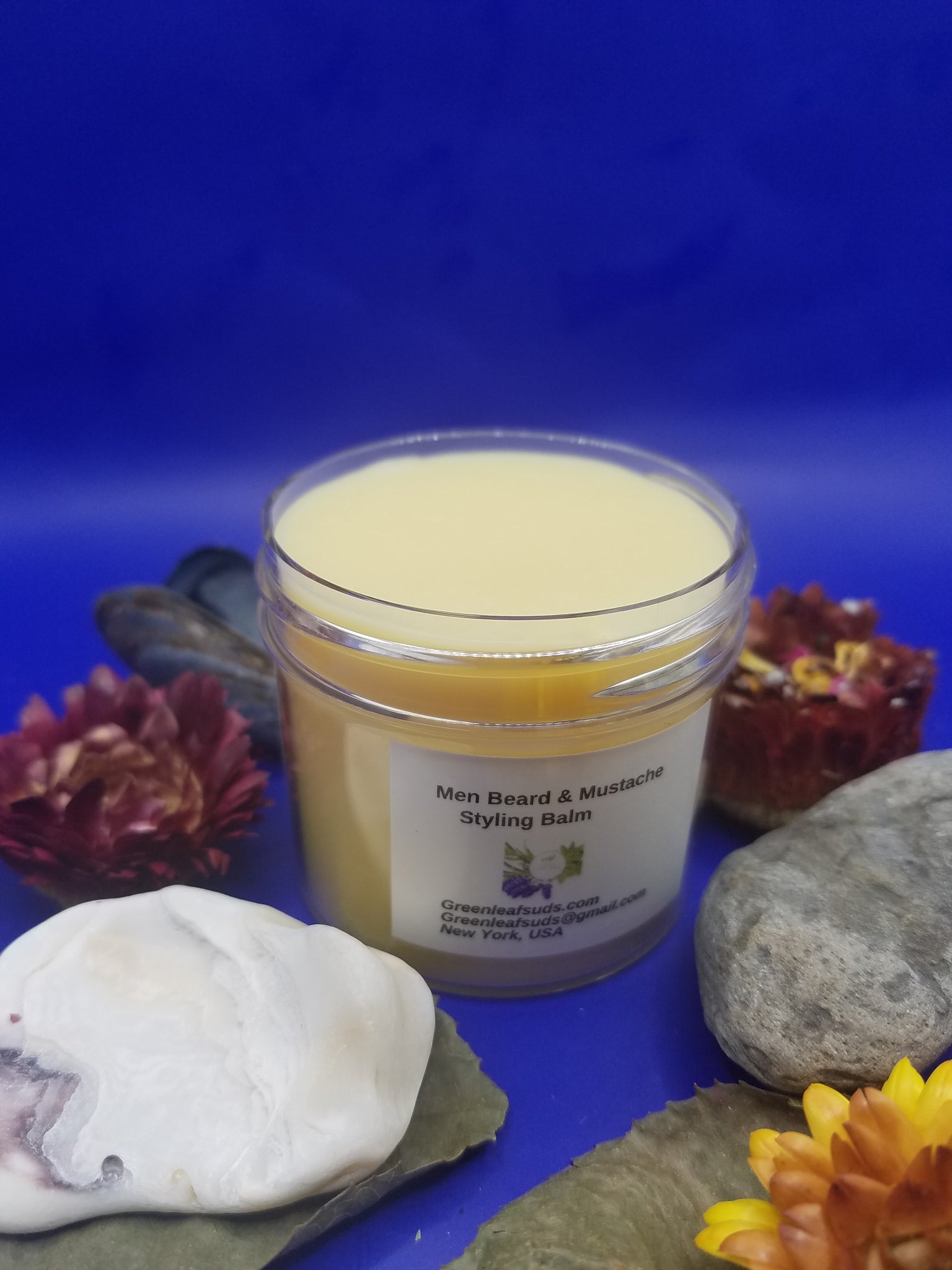 Style facial hairs with just enough hold to tame and shape, along with an elegant, masculine scent. Organic Olive Oil keeps hairs soft and nourished, looking healthy and touchable. Candelilla Wax, Mango Butter, and Kokum Butter give a soft-to-the-touch hold that can tame a beard or shape a handlebar mustache. Cranberry Seed and Raspberry Seed Oils calm and soothe hairs and skin underneath, conditioning as they go. Can be used to style head hair as well, making this vegan balm do double duty. Scented with our Men's Scent Essential Oils.